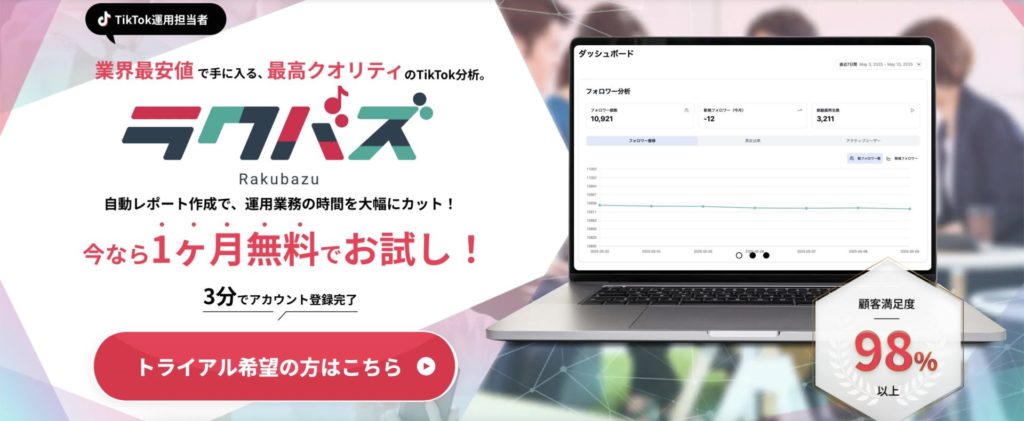 そんな「ラクバズ」が今なら無料で利用できるので、ぜひご自身のTikTok運用のさらなる進化にお役立てください。