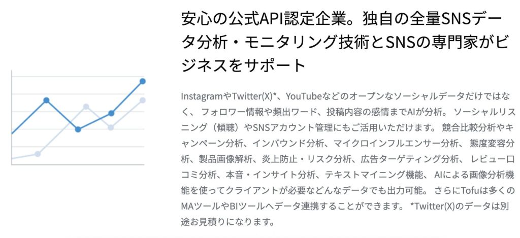 Tofu Analyticsは、様々なSNSのトレンド分析に特化したツールです。